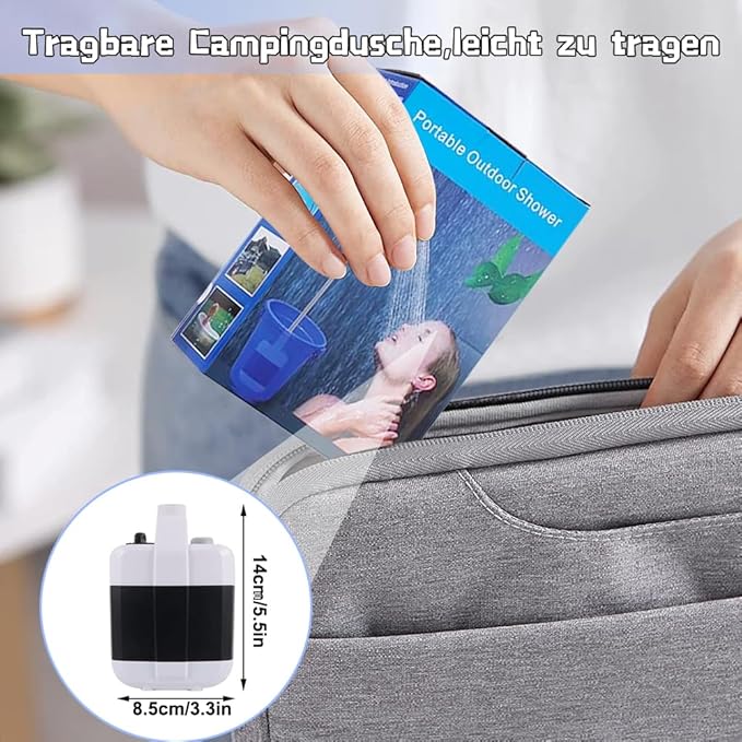 - 🌊 Powerful Pump: Equipped with a rechargeable pump that delivers a strong, consistent water flow for a refreshing shower anytime, anywhere.